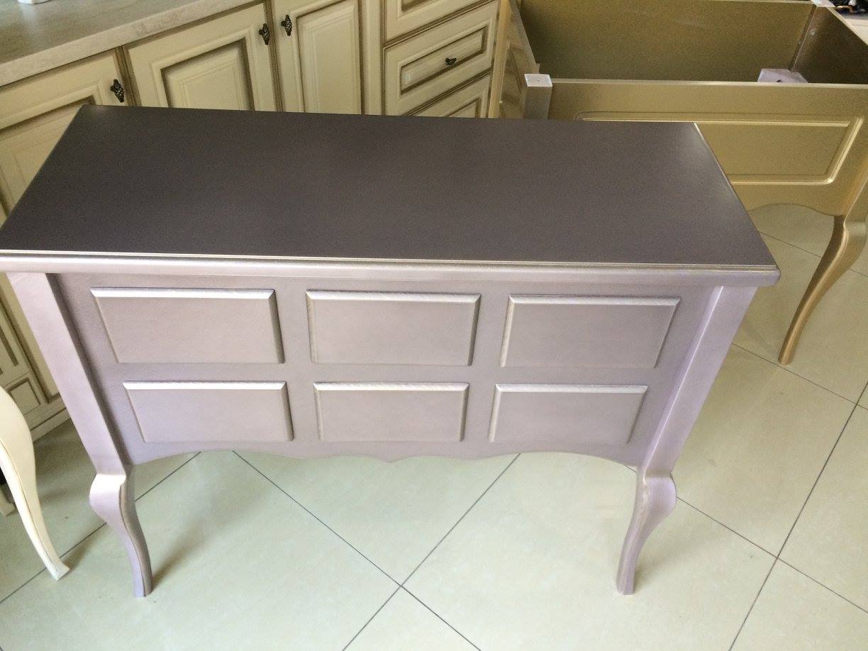 Mobilier living Comodă cu sertare Comoda cu sertare realizată din lemn masiv si MDF – vopsea poliuretanica mov metalizat FacebookLinkedIn